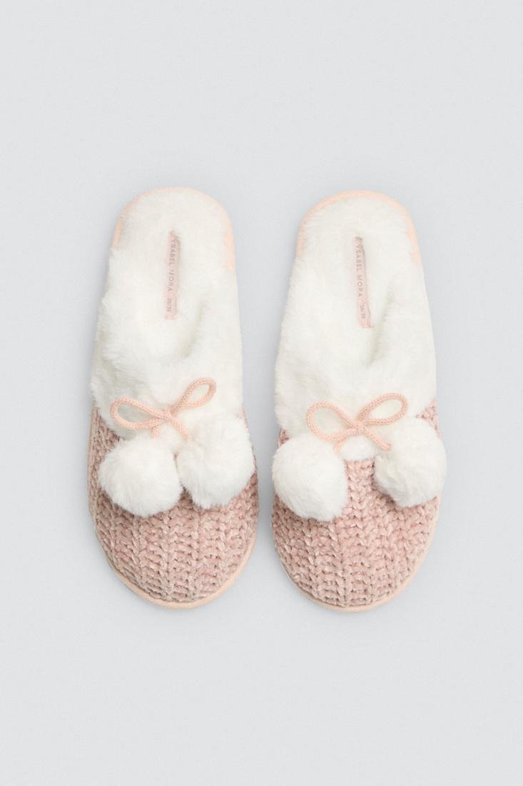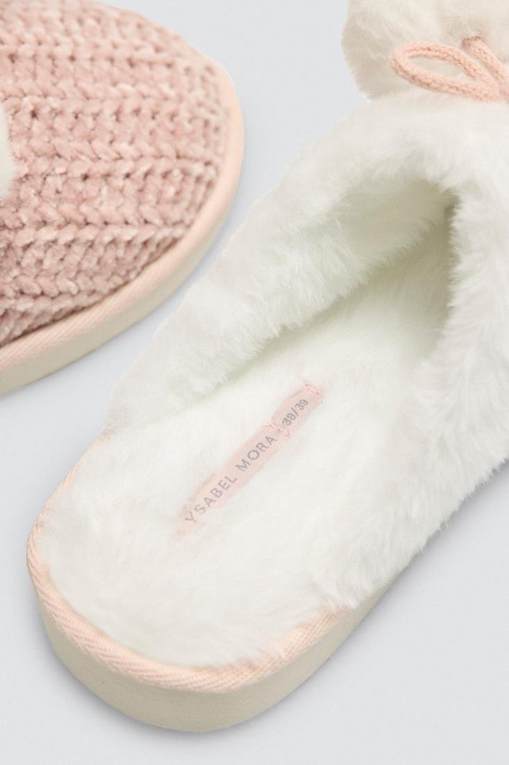 Pantofole da donna Ysabel Mora con pompon e dettagli in pelliccia.