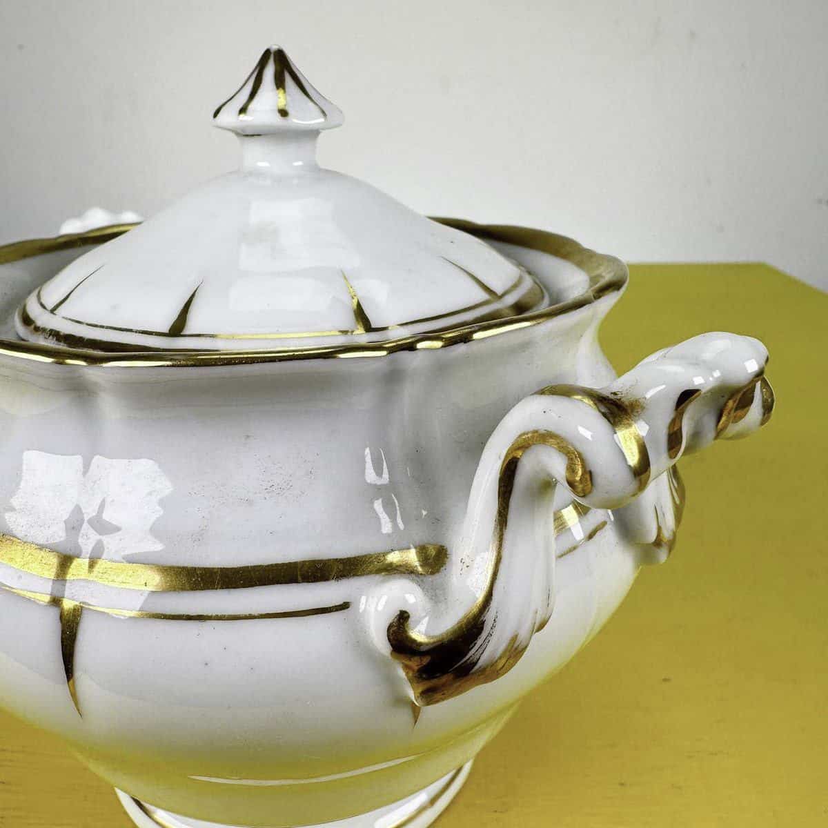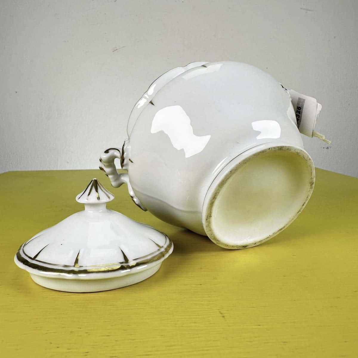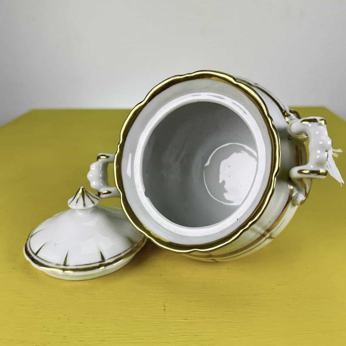 zuccheriera vintage in ceramica con decori oro
